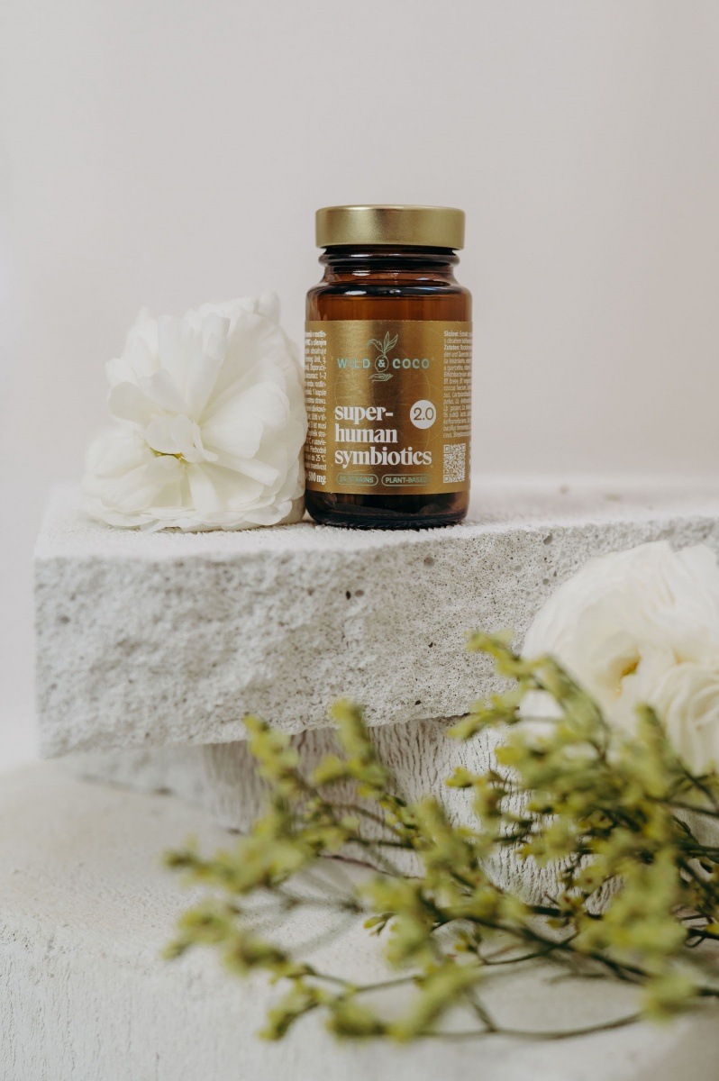 Probiotika Superhuman používáme od roku 2016. Objevili jsme několik vysoce synergických látek, díky kterým mají ještě vyšší účinnost. A tak vznikla řada 2.0. Obsahuje o 16% více bakterií, 29 bakteriálních kmenů, které rády osidlují lidská střeva, společně s 110 mg proskurníku lékařského, 90 mg quercetinového extraktu z kopřivy dvoudomé a 100 mg vitamínu C. Svou činností ve střevech podporují odolnost, střevní stěnu i celkové fungování mikrobiomu a vytvářejí serotonin (pocit radosti). Naše kapsle jsou enterosolventní - rozpouští se ve střevě a nedráždí sliznici žaludku!