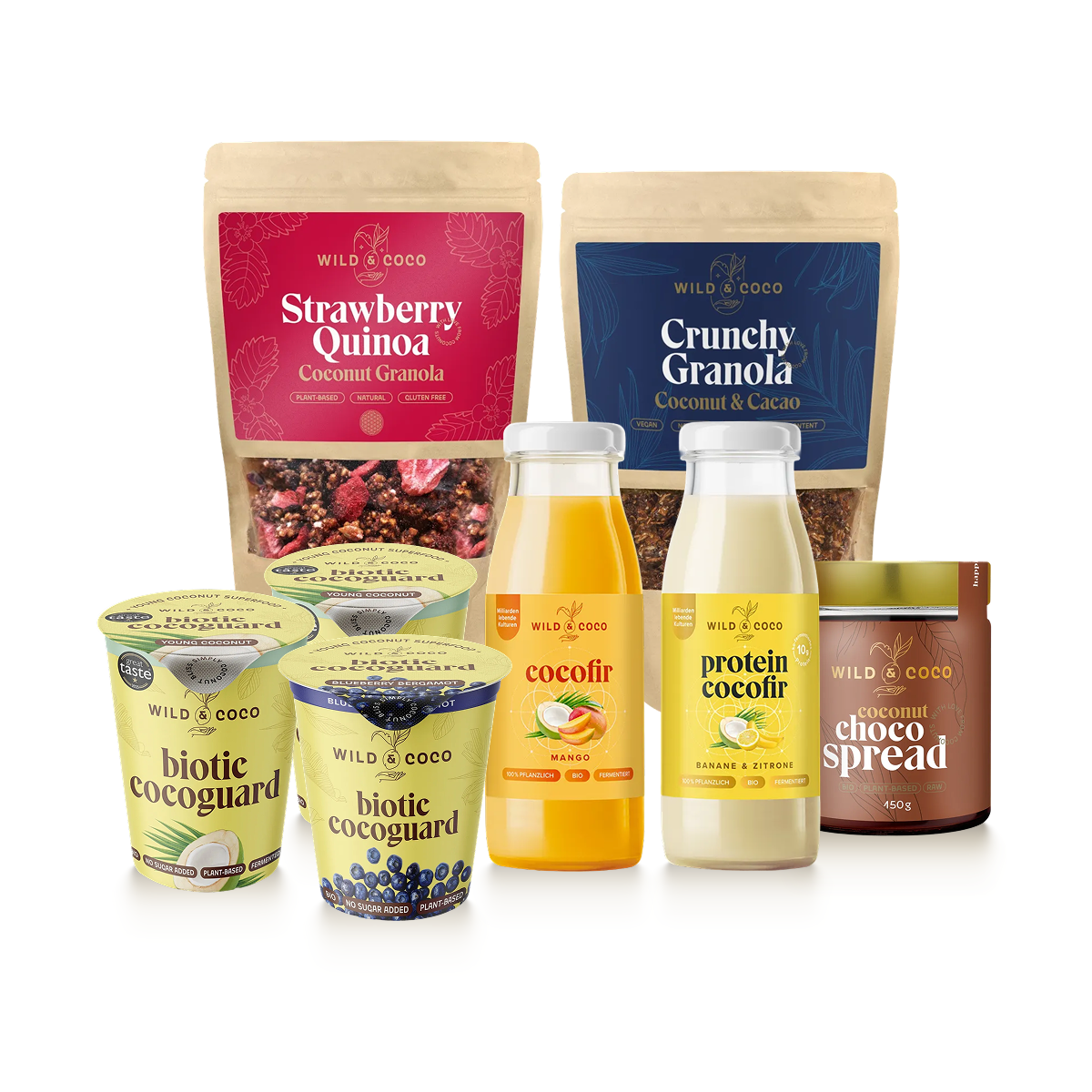 Uvnitř najdete: Cocofír mango, 2× velký bílý Cocoguard, borůvkový Cocoguard, Banana Protein Kefír, granolu čoko + granolu jahoda a Choco Spread 150 g. Pro hektická rána, kdy nechcete nic vymýšlet, ale chcete se najíst tak, aby nepřišel rychlý propad.