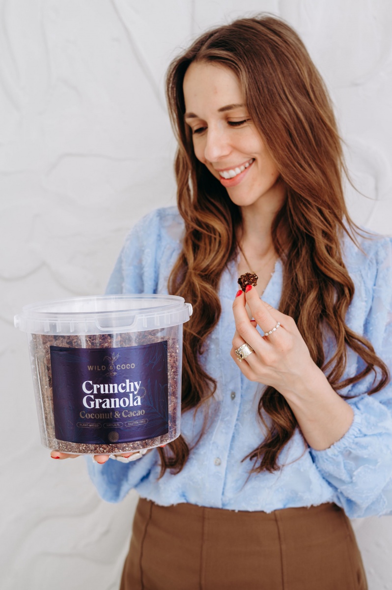 Naše křupavá kakaová granola si našla místo v nejedné snídaňové, svačinové a „mám na něco chuť“ situaci. Díky větším kusům nahradí cereální tyčinku i sušenky k čaji a složením potěší každého bezlepkáře.